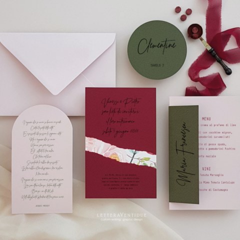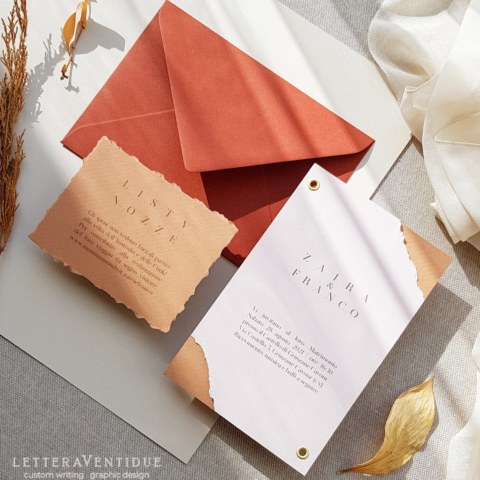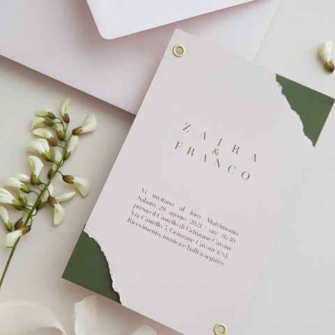 • Partecipazioni con carta dal margine regolare o al vivo, in 34 carte differenti per colore e texture.